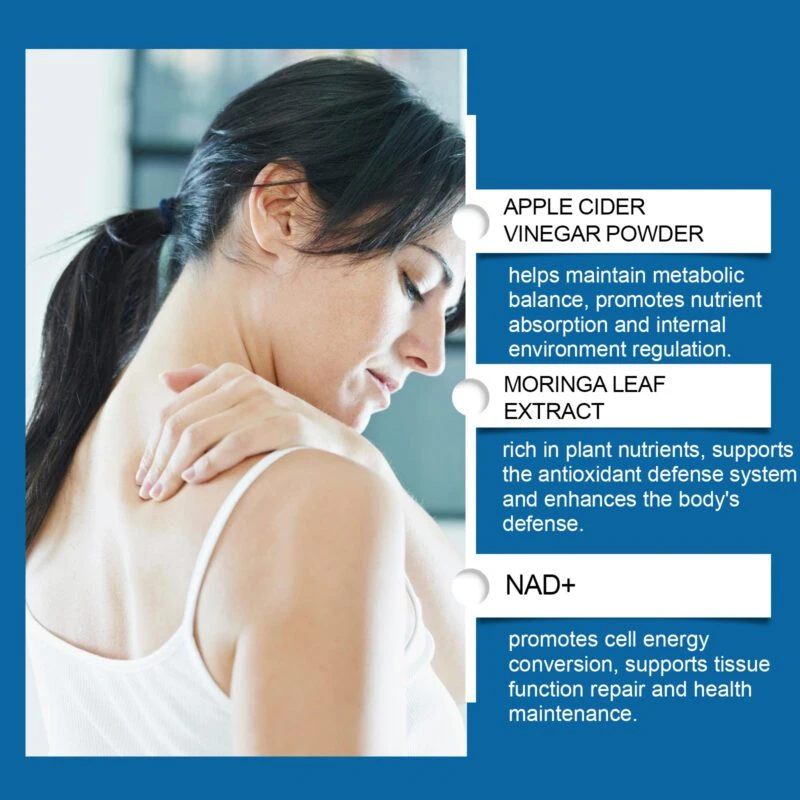 Our joint care burst bead supplements are formulated with apple cider vinegar powder and moringa leaf extract to support joint flexibility. Easy to use: dissolve in your mouth or bite for quick consumption, 1-2 capsules as needed. Designed to aid joint comfort and mobility through dietary supplementation.